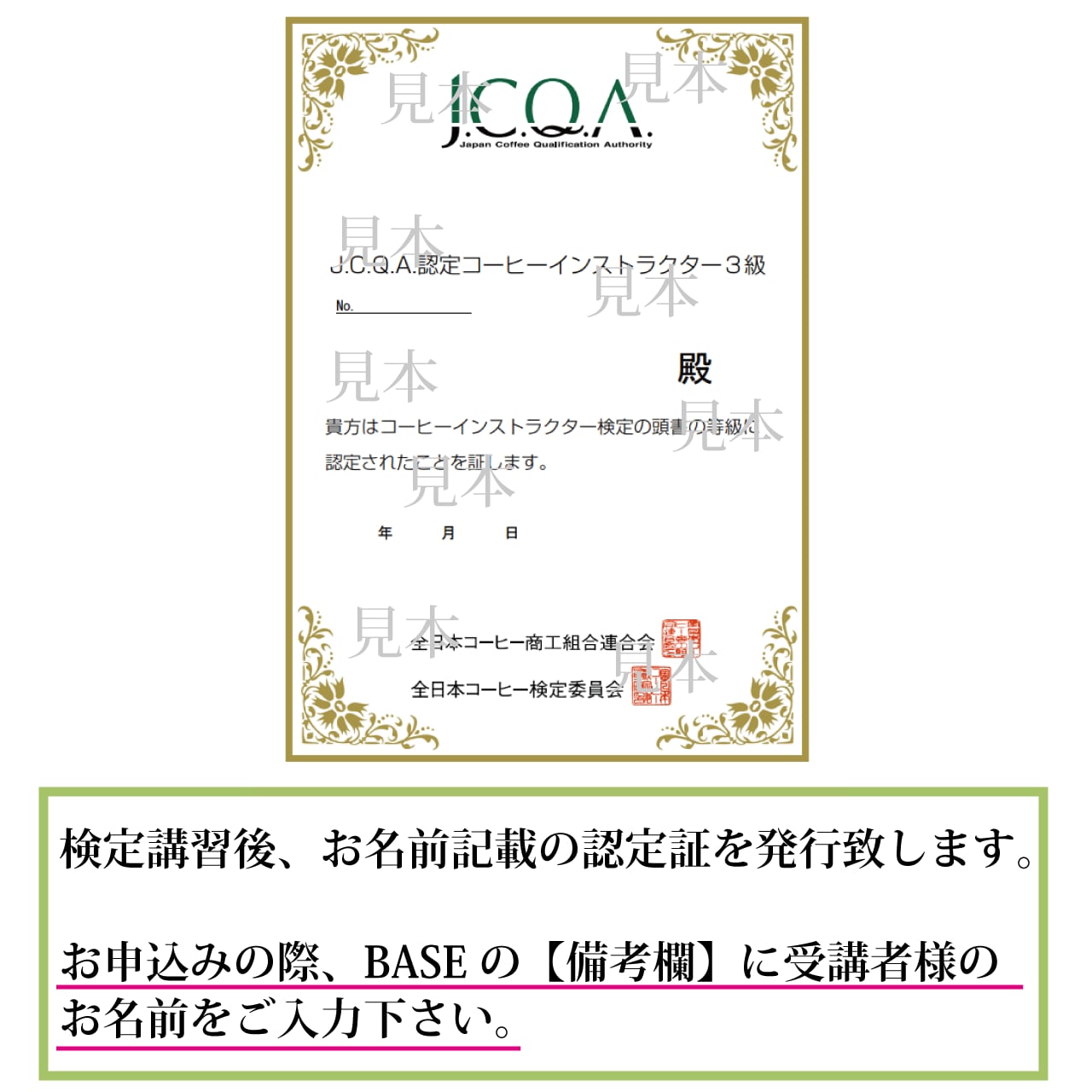 ※コーヒーインストラクター3級講習料・認定証交付代(1,500円)を含みます。